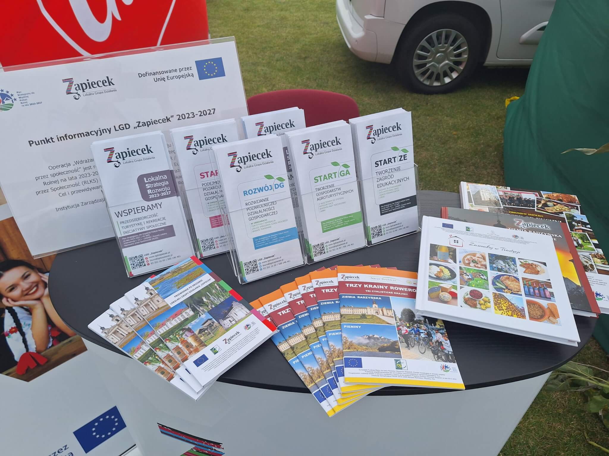 Przygotowaliśmy stoisko promocyjne, na którym można było nie tylko zapoznać się z publikacjami opracowanymi i wydanymi przez LGD „Zapiecek”, ale także dowiedzieć się, czym zajmujemy się na co dzień.