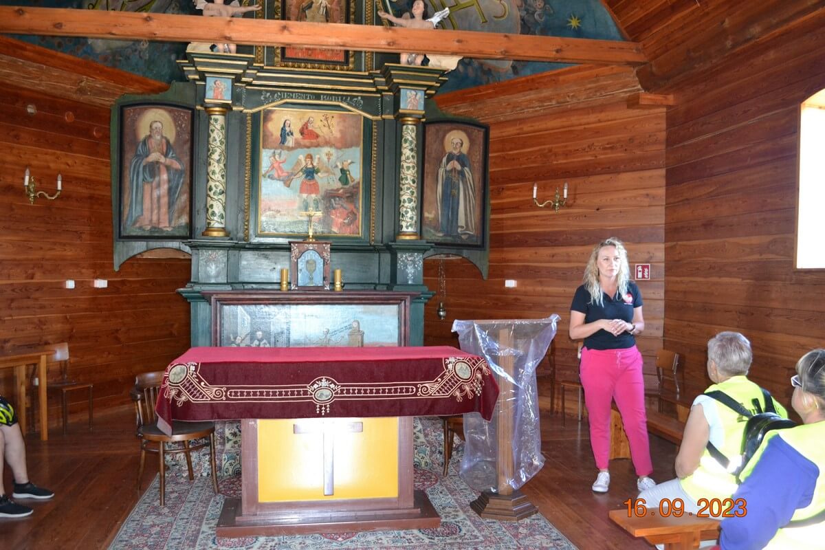 Tam też uczestnicy rajdu odwiedzili kaplicę św. Michała Archanioła na parafialnym cmentarzu, której historię przybliżyła nam p. Magdalena Domańska – Kierownik Referatu Kultury w Ulanie Majoracie.