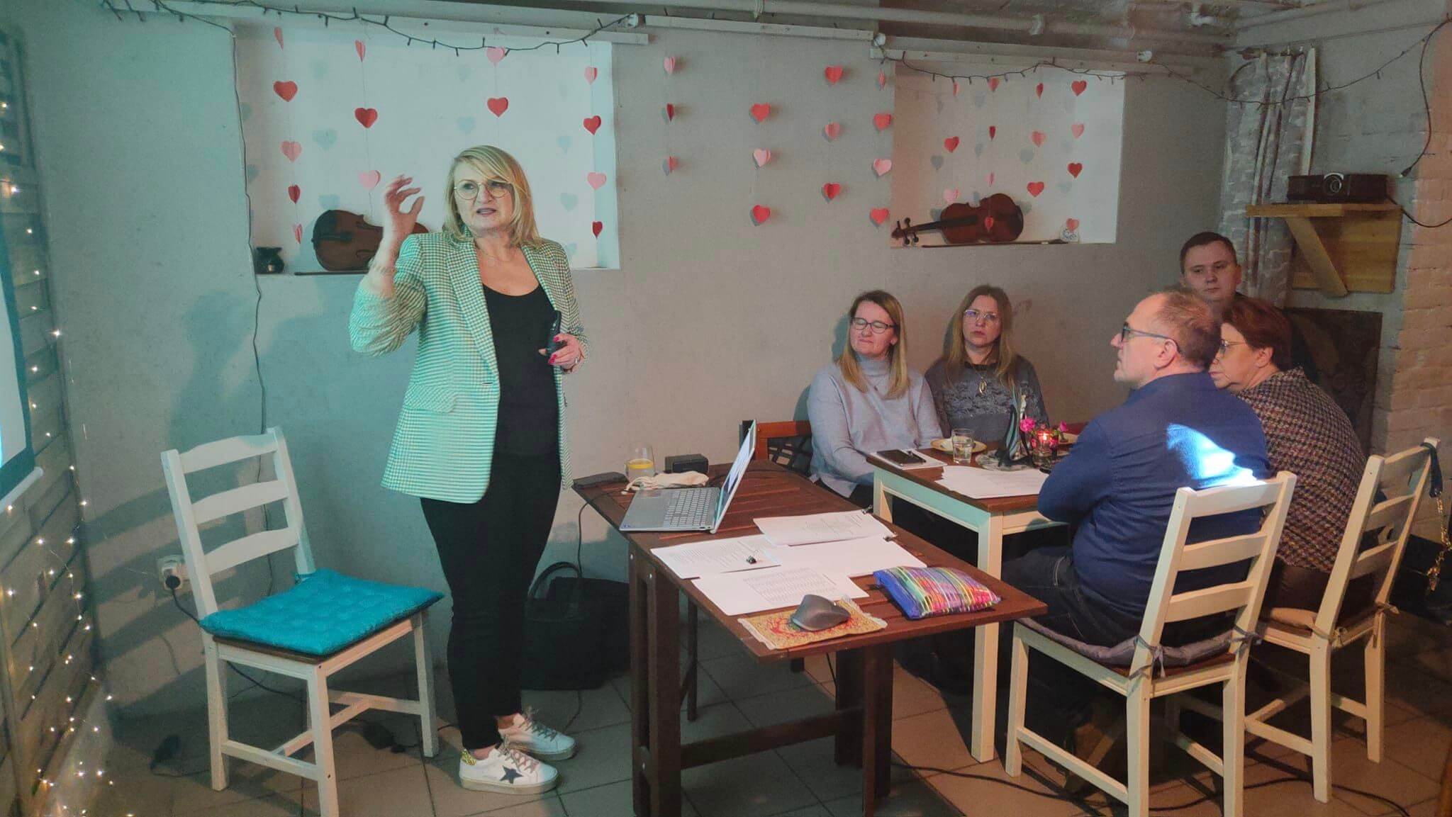 Tematem zajęć był rozwój osobisty, jak poznać i wykorzystać własny potencjał”. Na te i inne pytania odpowiadała prowadząca, Urszula Bancerz – właścicielka firmy Centrum Doradztwa Finansowego w Łukowie, prezes Stowarzyszenia Przedsiębiorców Ziemi Łukowskiej. Moderatorem spotkania był Mateusz Orzechowski, właściciel Wspólnoty. Prelegentka wykorzystała swoje doświadczenie wynikające z wieloletniego praktycznego prowadzenia kilku inicjatyw gospodarczych i biznesowych oraz pokazała intelektualną i zawodową drogę, która poprowadziła ją w kierunku zdobyciu kompetencji trenera, rozwoju własnej osobowości i rozbudowania możliwości realizowania się w różnych funkcjach gospodarczych i społecznych.
